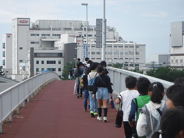 うたみ(総合的な学習の時間)の取組で、海についての学びを深めている3年生。今日は、南二見の人工島にある「水産技術センター」へ、校外学習に出掛けました。